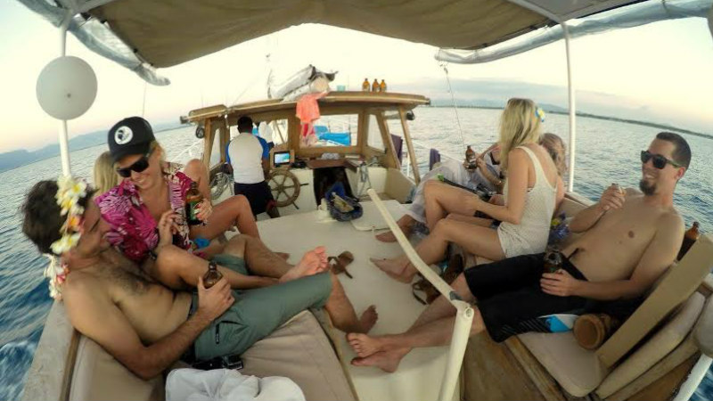 On board, we provide delicious meals, soft drinks, seasonal fruits, snacks and bedding. Just bring your boards, best tricks and alcoholic beverages.